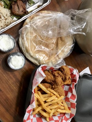 Khalaf Grill offers amenities such as Takeout, Delivery, Good for Kids, Outdoor Dining, Outdoor Parking, Parking Lot, Accepts Contactless Payments, Takeout, Delivery, Good for Kids, ensuring a comfortable and convenient experience for clients.
